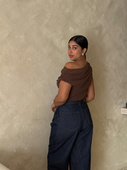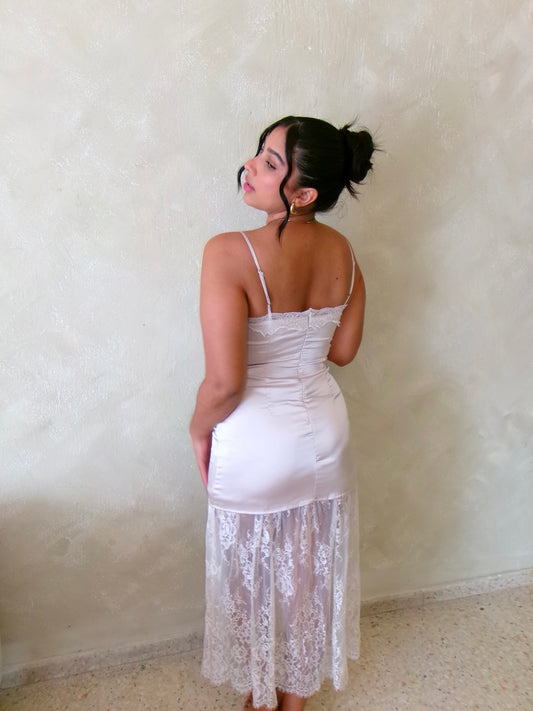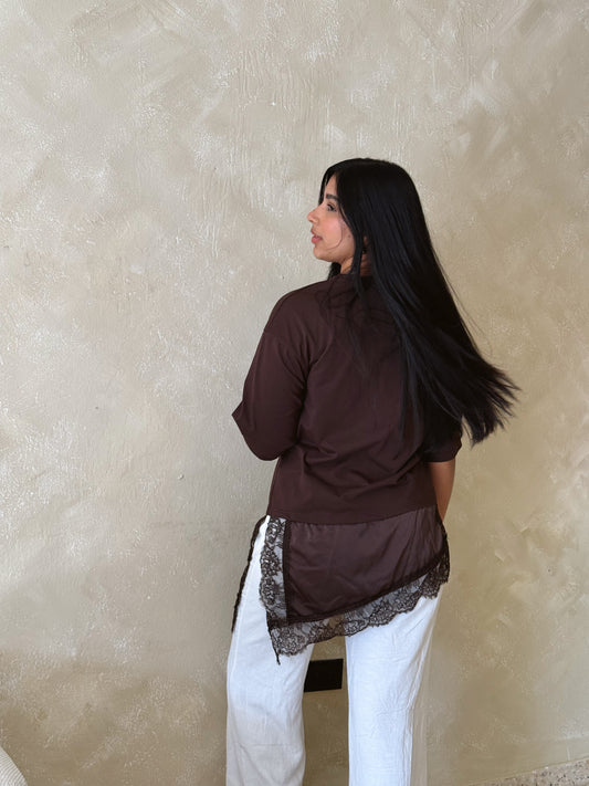 Lace satin asymmetrical top
