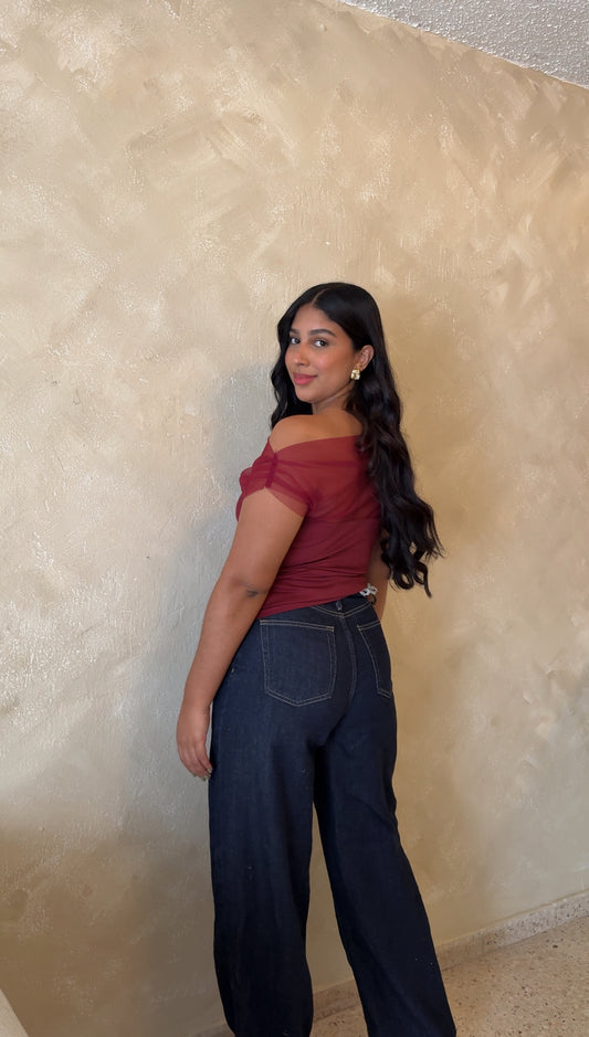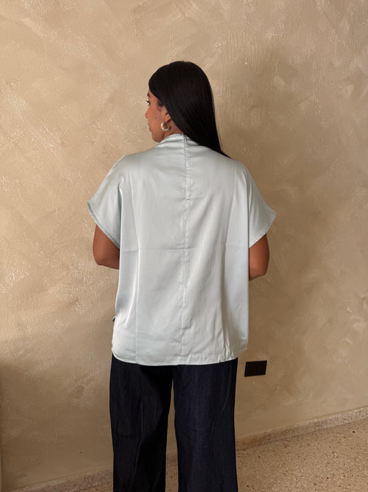 Lace satin asymmetrical top